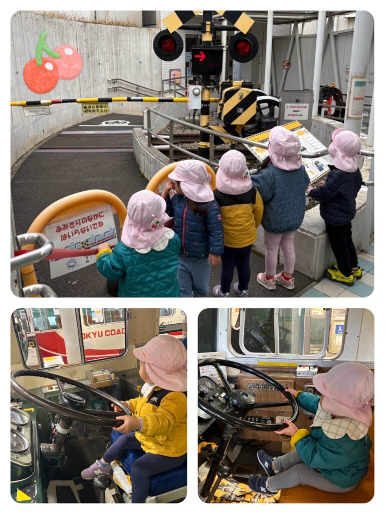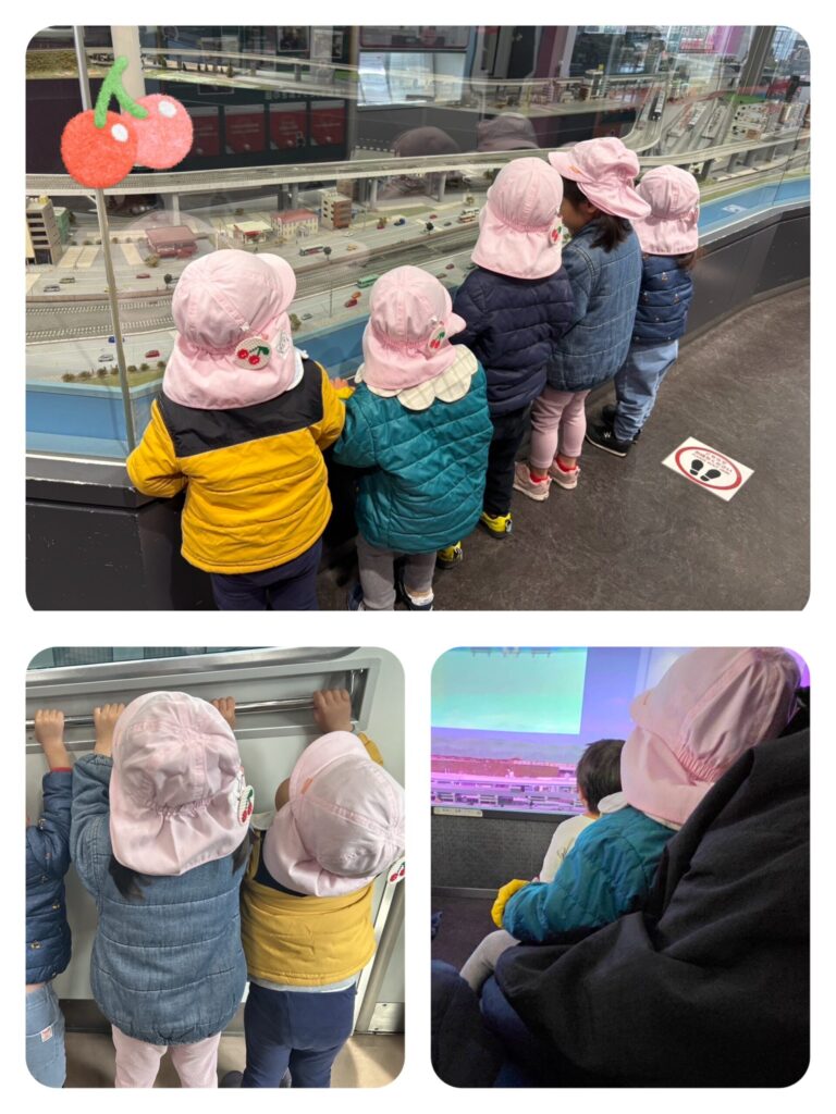 みんなでグルグルとあちこち歩きながら、電車が走ってくると「来た来た!!」「あっちにも走ってるよー」「先生!見て見て!!」と興奮気味に教えてくれました♪